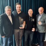 Bild 5: Lukas Bingel (2.v.l.) und Thomas Müller von KMU Informatikpartner zusammen mit den sysob Channel Account Managern Peter Schneider (links) und Markus Senbert (rechts) freuen sich über den Titel „Best Reseller Schweiz“.